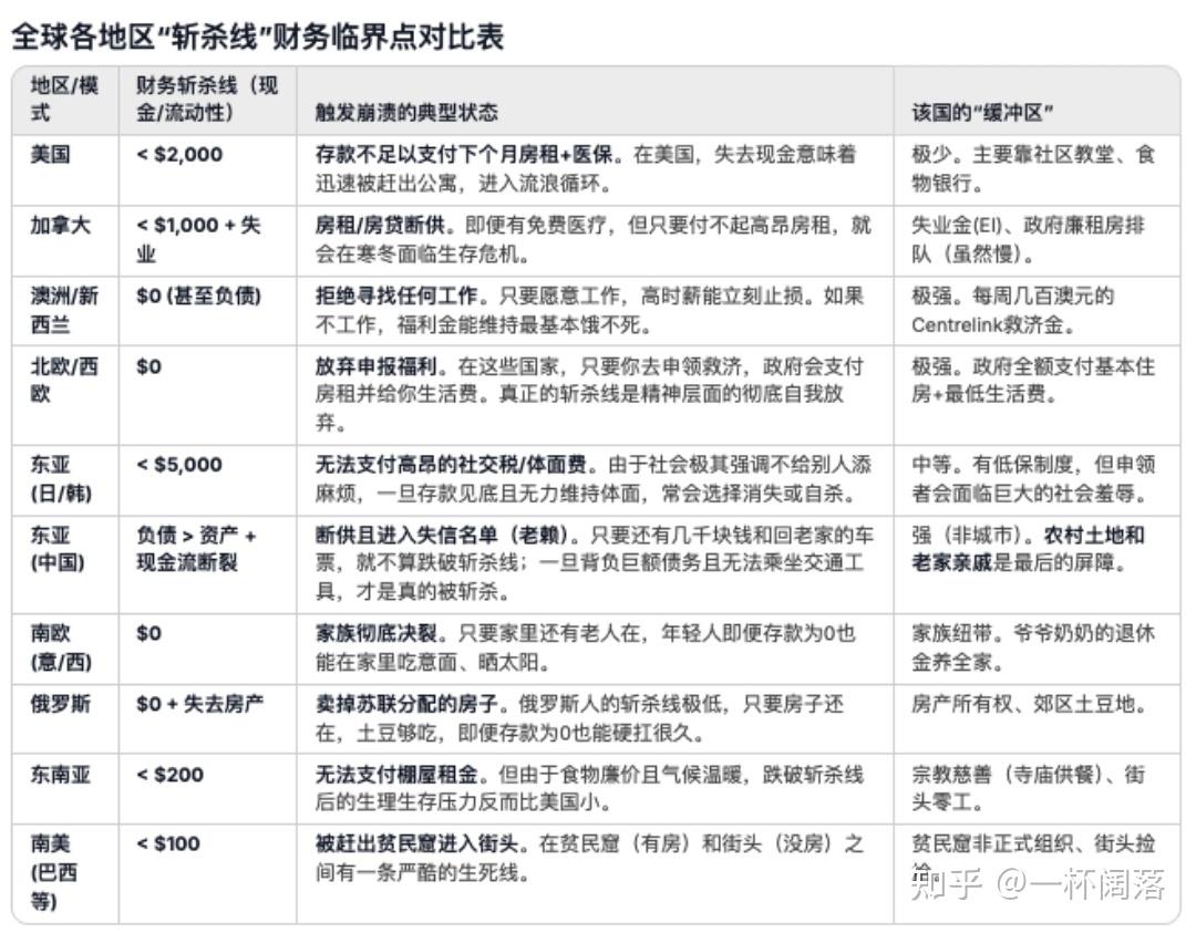 有人说,“斩杀线”的火爆是幸灾乐祸,实则是全民风险教育。它让我们看清:真正的差距从不是工资数字,而是跌倒时有没有兜底的网。美国社会达尔文主义的“耗材筛选”逻辑,让“弱肉强食”成为常态;而我们的安全感,藏在95%的医保参保率里,藏在农村宅基地的最后退路里,藏在灵活就业可缴社保的缓冲里。