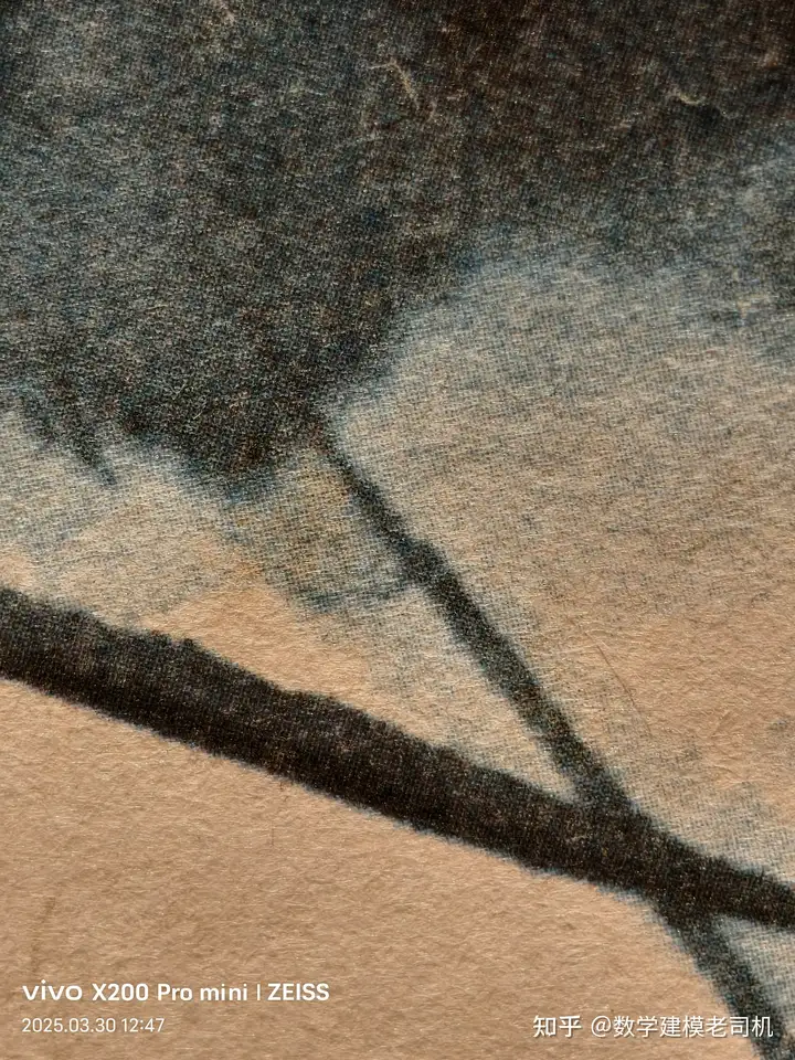 下面这张照片调暗后,可以看见纸张的老化纹,字的边缘有锯齿状,可能是脱墨导致比较明显情况。说明保存时间比较长。