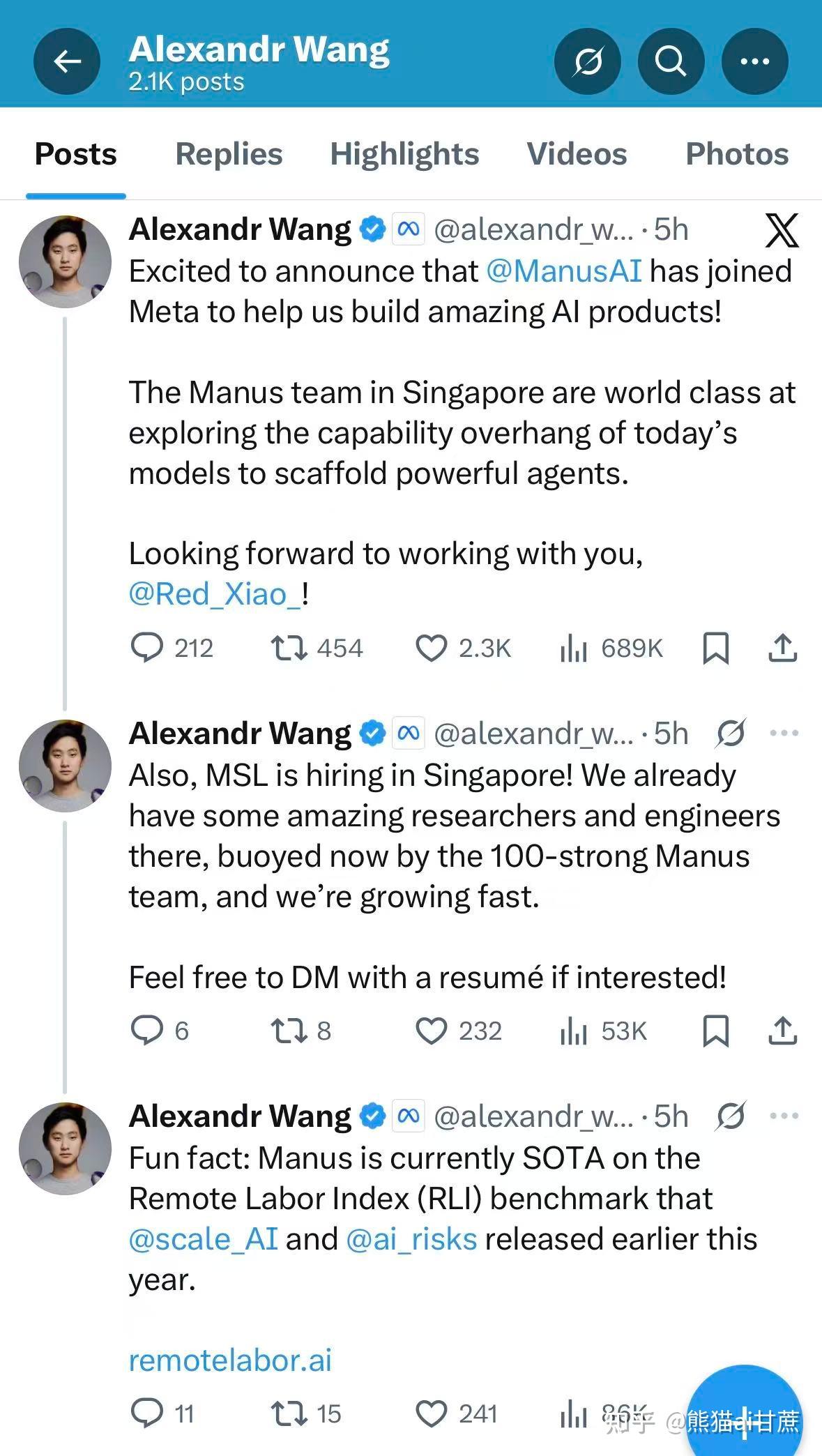 - 打榜真的有用,但要选对榜单,Alex作为Scale的founder和现在董事会成员,专门提到Manus在RLI榜单排第一。我刚刚简单微信搜了一下,很少被媒体关注。