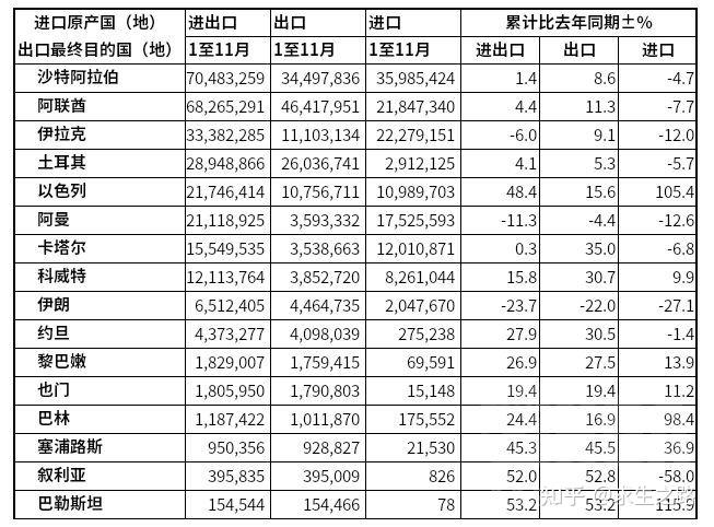 这是西亚地区,2025年前11个月与中国的贸易数据。