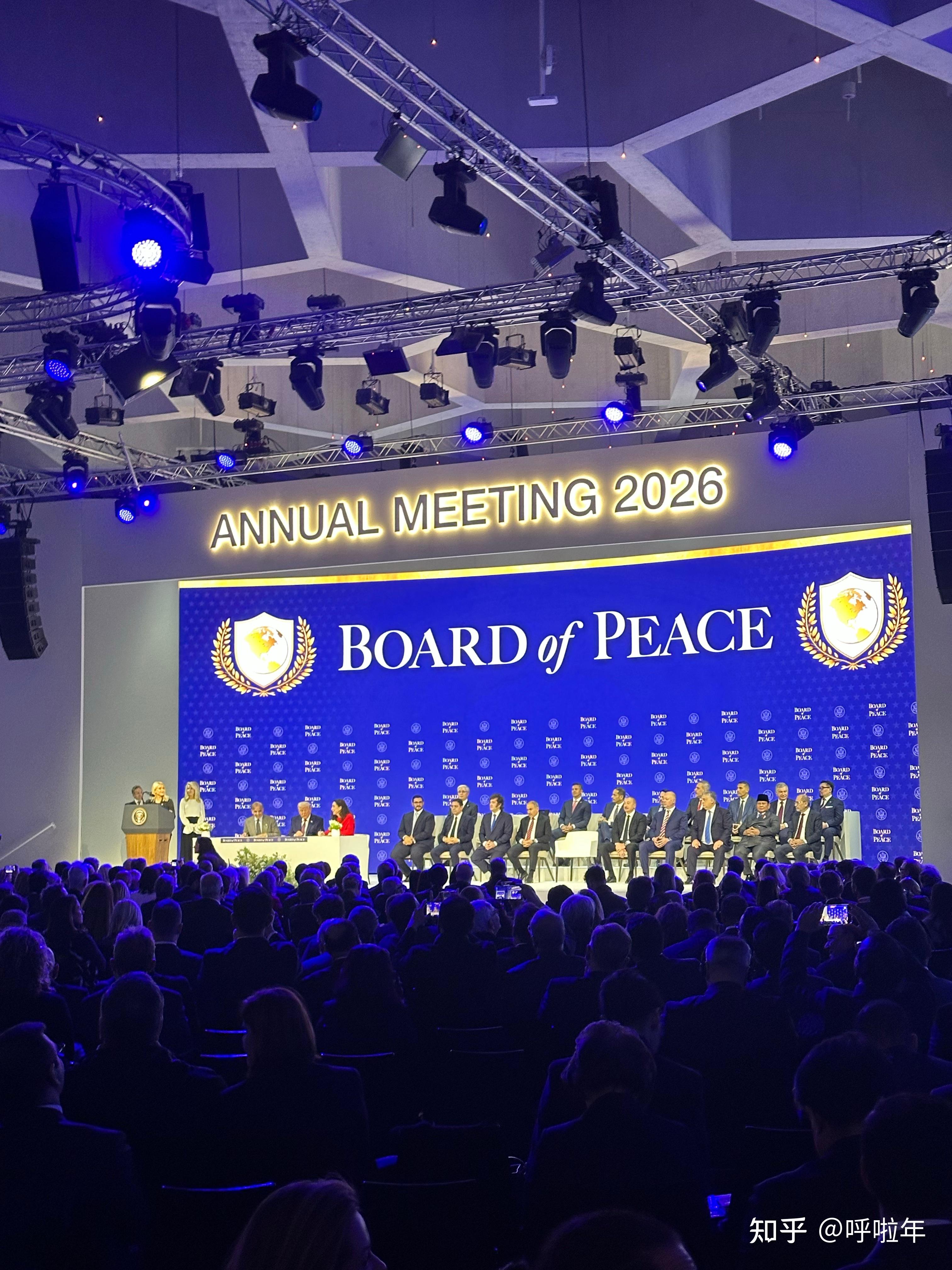 8. “和平委员会”成立仪式本来一个小时的议程,硬生生干到了两个小时。签字完后,现场播了个视频,题目是“伟大的特朗普总统和他伟大的成绩”。后面一个小时基本都是马屁环节。