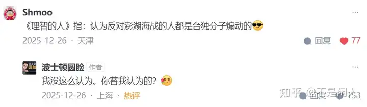 “你现在帮满清说话,这是《人民日报》都不敢这么洗的,你屁股歪哪里去了?(引用权威压死你)”