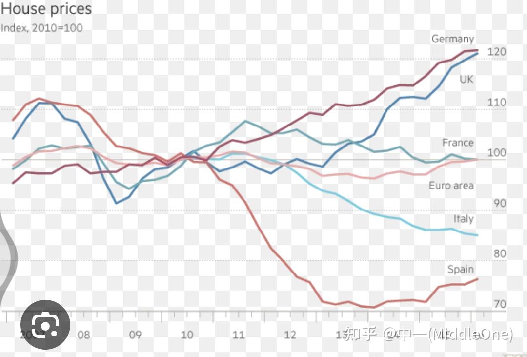 房价也掉头向下,只比西班牙好点。