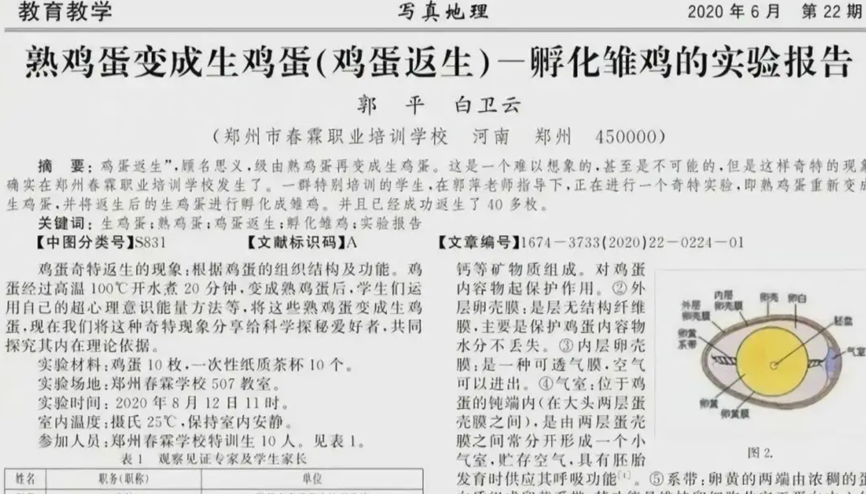 历史学界如果没了阎崇年,就像生理学或医学领域没了郭平和白卫云,当然,如果你问这两位是谁,我只能嘲笑你见识短浅。这两位大佬曾在2020年发表论文,成功证明熟鸡蛋可以返生,而且顺利孵化雏鸡