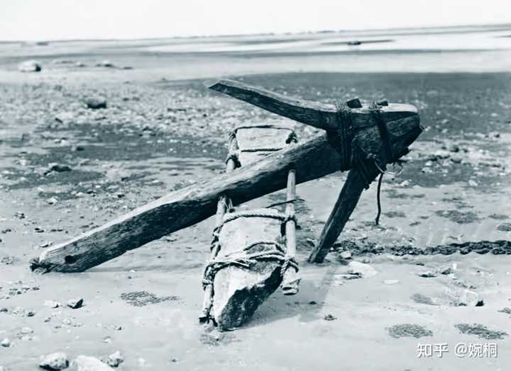 1924年,美国摄影师甘博在中国北戴河发现一件奇怪的东西。这个东西像箭头一样,是用木头制作的,榫卯结构组装而成。在它中部插着两根木棍,木棍上绑着两块大石头,在箭头的尾部还有一个圆孔。从外观上看这个物件一定年代久远。箭头可能松动,还用绳子绑着。甘博对这个怪东西颇感兴趣,仔细研究考察之后,他推测这个东西一定是中国古代遗留下来的一件兵器。于是他就找来当地人询问这究竟是件什么兵器?这位当地人告诉他:这不是啥兵器,它就是个船锚。