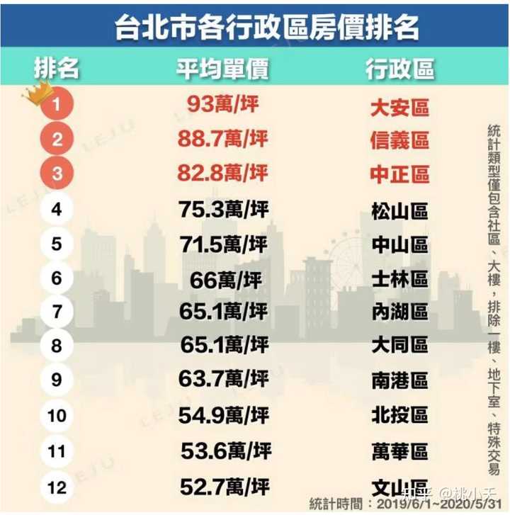 - 台北,天龙国,房价冠绝亚洲,和北上深有得一拼,在台北市区买不起房不丢人。但台北也有郊区卫星城,价格往往是市中心的1/3左右公共交通40分钟到市中心,比如淡水,夕止,中产都买得起