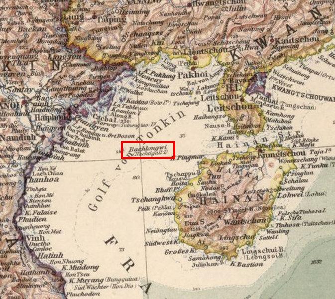 可见,早在十九世纪末二十世纪初,“白龙尾岛”(“Bacht Long Vi”或其变体)的名字就在地图上出现了。