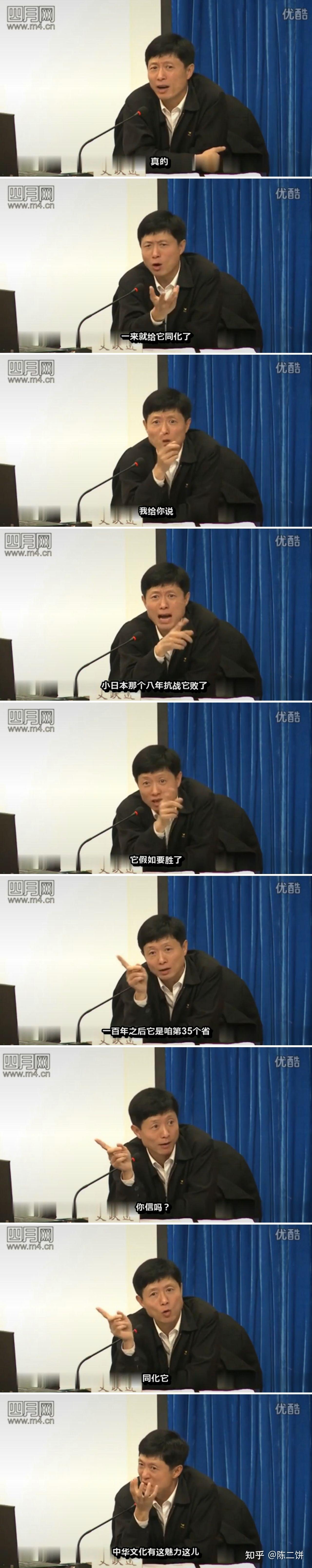 “中国文化博大精深,有几千年历史,日本到中国来慢慢地肯定会被中国文化同化。辽、金、元、清进入中原,到最后还不是被我们同化了。”