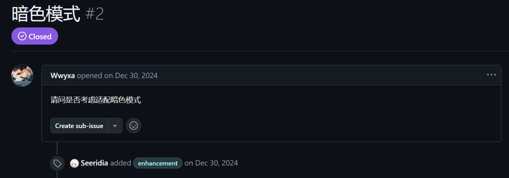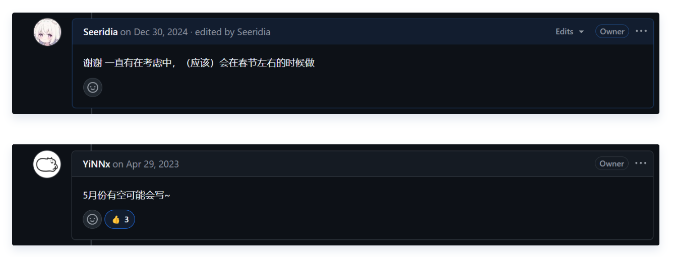 后面咕咕了一段时间,一位用户 在前些时候给仓库发了一个 issue: