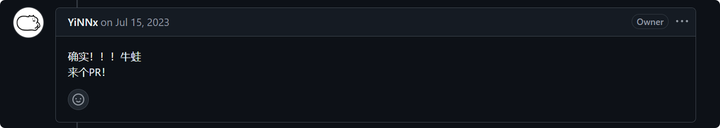 上图是我的回答,下图是当时我提出 issue ,YiNN 的回应