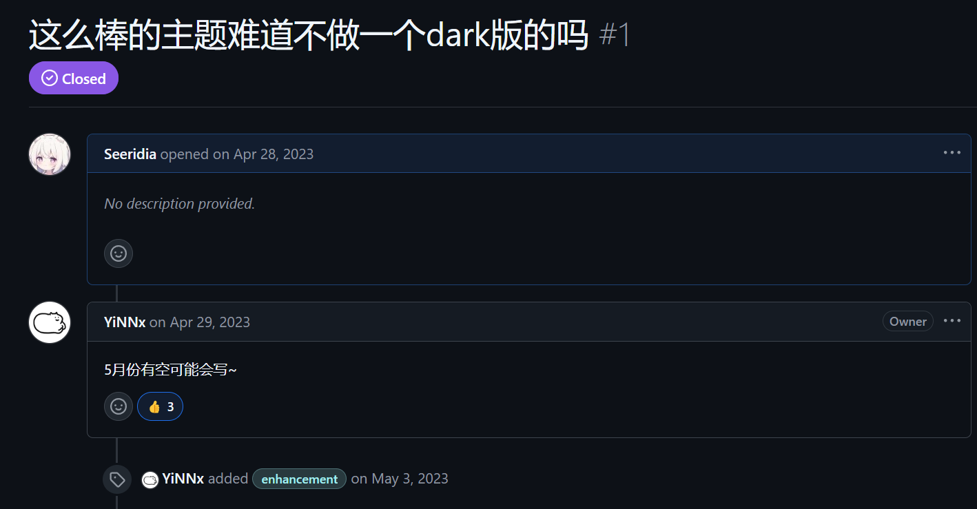 后面咕咕了一段时间,一位用户 在前些时候给仓库发了一个 issue: