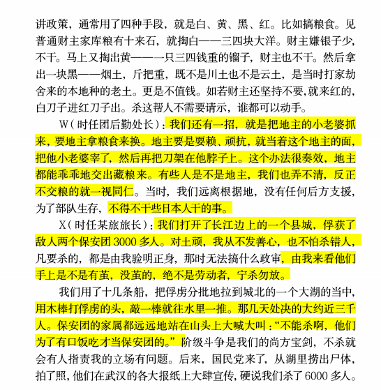如果指示、讲话和回忆比较抽象、隐晦和美化,那么就需要点具体描述。根据刘家驹的采访当年老战士提到,当时为了得到物资,我军采取了许多非常手段(包括上文提到的“打土豪”“借粮”“革命绑票”),笔者认为是不能过于苛责的,毕竟革命是很艰难的,而且也是“左”的错误在作祟。