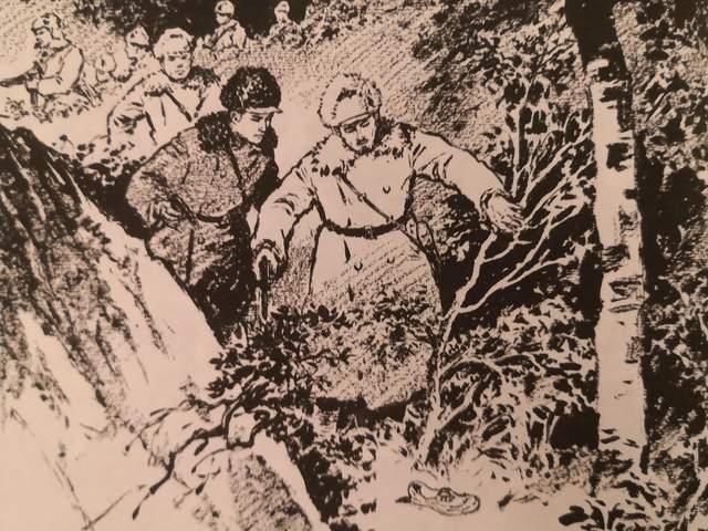 第二天,曲波带着几个人在驻扎的集市里遍寻杨子荣不着,带着纳闷的心情回营队时,一个弯腰驼背、穿破棉袄、头上顶个瓦盆,手里拄个棍子,鼻子外面淌着鼻涕的老头与他们擦肩而过。