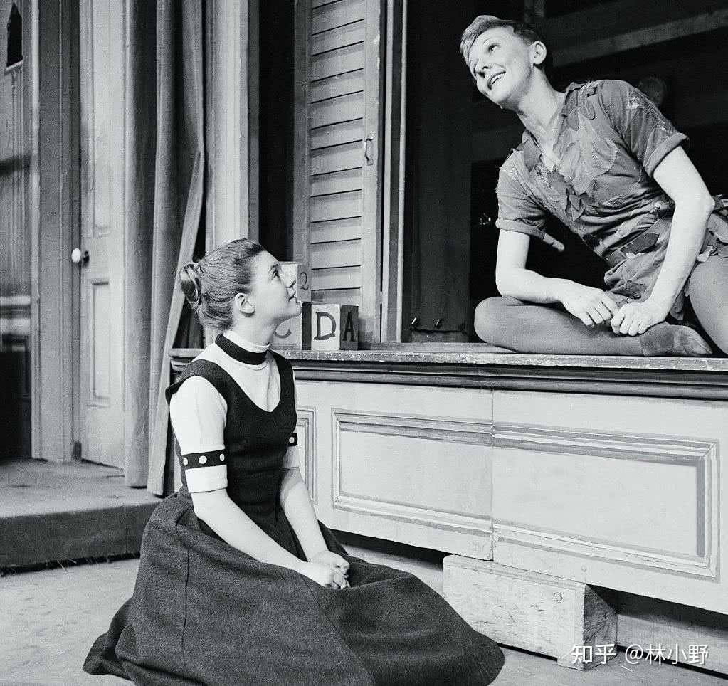 剧中,玛丽·马汀扮演穿一衣树叶与树浆制作的衣服、永远不愿意长大也永远不会长大的小男孩儿彼得·潘,这是1955年的事,而她14岁的女儿海勒·哈利迪(Heller Halliday)与她同台献艺。