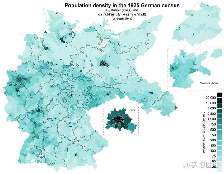 首先看一下魏玛共和国时期的人口分布及产业分布地图: