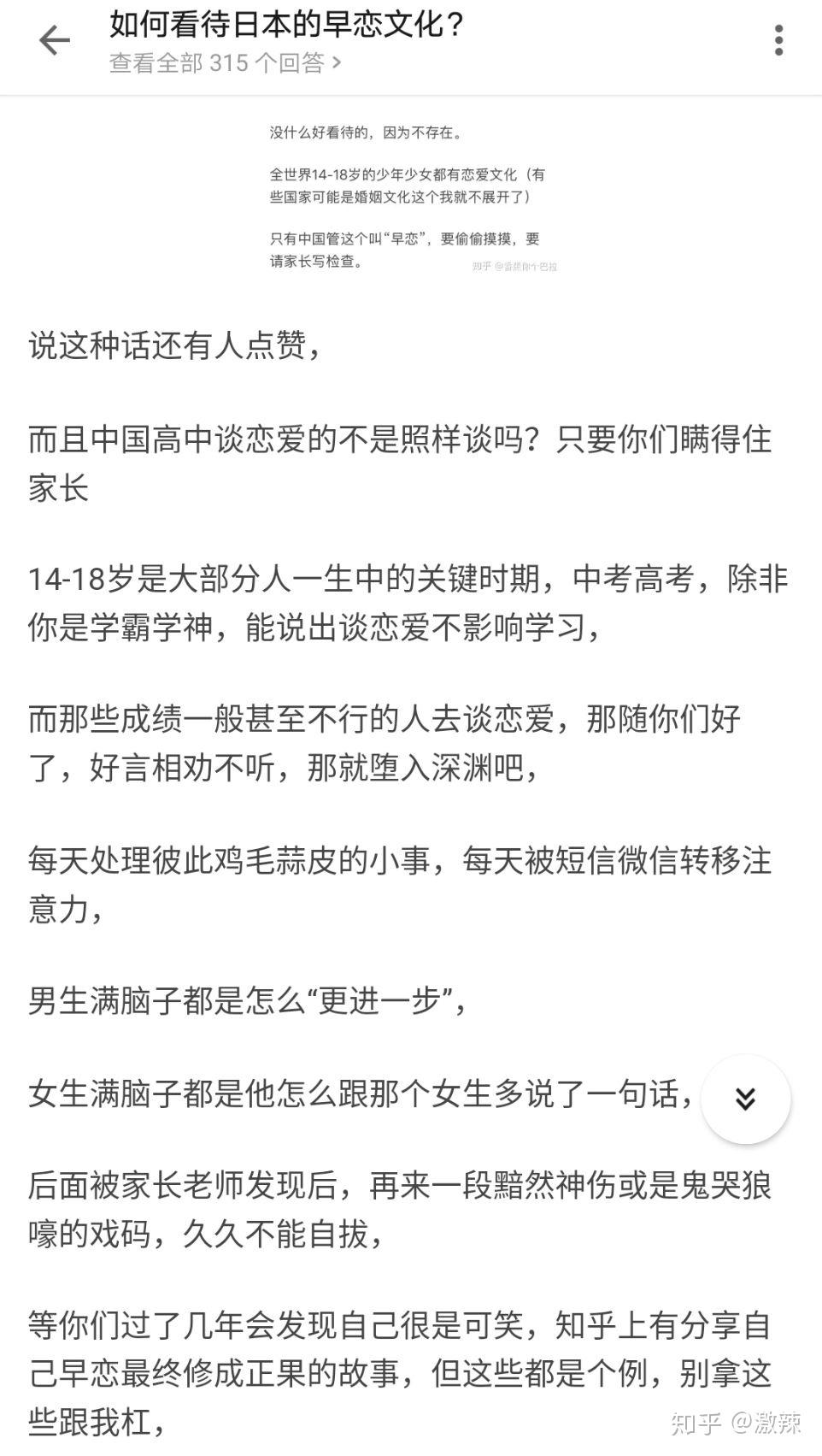 另外,按照这位的理论,全世界的中学生但凡恋爱都会在恋爱的水深火热中浪费青春,全世界的中学生但凡恋爱都会在十几岁过早怀孕,只有中国学生才能在学校和父母的教导下保持了纯洁无瑕,并因此走上世界巅峰,那些偷摸谈恋爱的都是不知好歹的自甘堕落,不会有一个好下场。原来现实是这样的吗?!