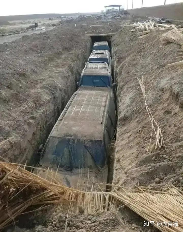 这些车辆很可能是前政府官员、美国和西方国家官员所使用,由于匆忙逃离时未能带走,因此选择埋藏在地下,以待日后转移。