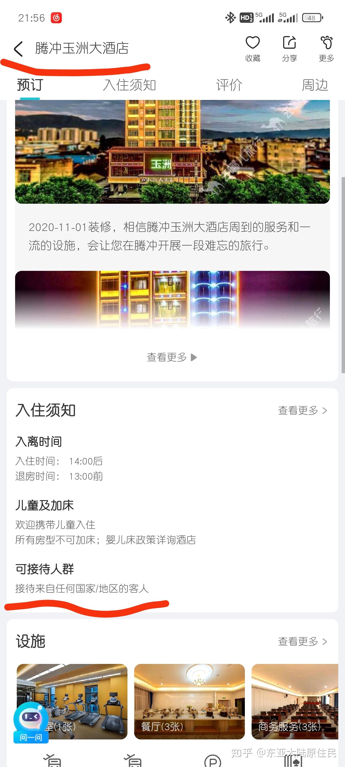 于是我又在app上搜了一家腾冲其他的酒店,上面有明确写“接待来自任何国家和地区的客人”