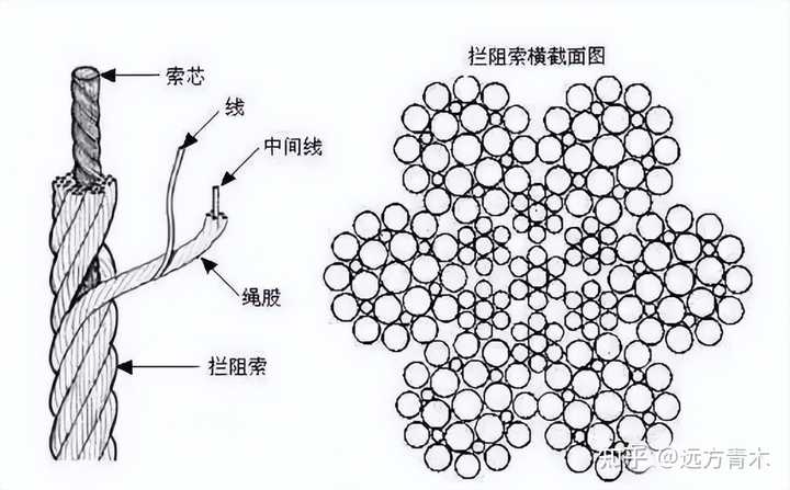 阻拦索的作用,是当飞机在航母上降落时,勾住飞机的尾部,让飞机在几秒钟之内停下来,如果阻拦索的硬度和韧性不过关,航母就成了一艘没法停飞机的普通大船。