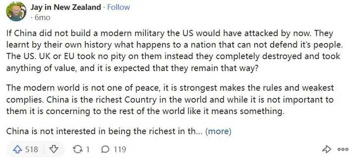 我们每年GDP新增规模相当于新增一个韩国,我们每年海军新增军舰吨位相当于新增一支法国海军,我们的实力每一天都在增长,我们正以肉眼可见的速度迅速缩小与美国的差距。