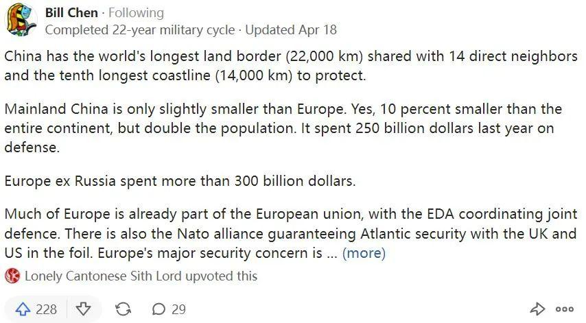 在外网有一个话题:如果中国如此热爱和平,为什么还要花这么多钱来扩大和现代化军队?一些国外网民发表了自己的意见。