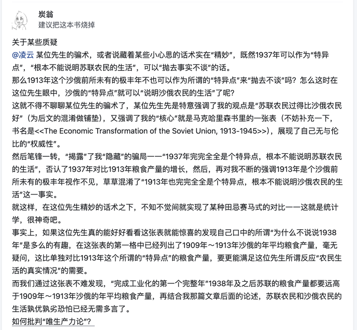 首先,有些一看到批判唯生产力论就揪住只言片语想当然认定我所谓虚空打靶、完全否定要发展生产力重视生产力的二极管人士请你们先锻炼独立思考能力,这些评论着实不值一提。