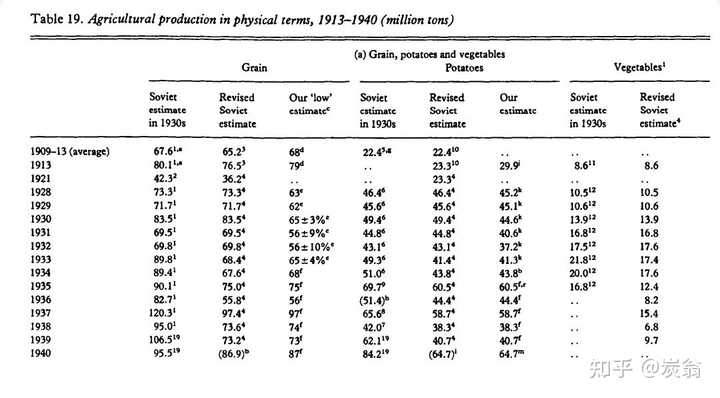 其实你再仔细看看这张表,就能感觉到不对劲——作者估计苏联粮食产量的这一列,1928-1933的产量数字跟苏联官方和俄联邦官方的统计结果均不相同,怎么到了1934年以后,就变成了跟第二列官方数据一致?