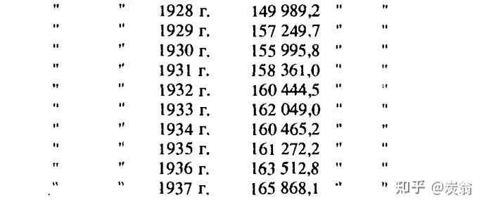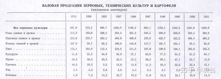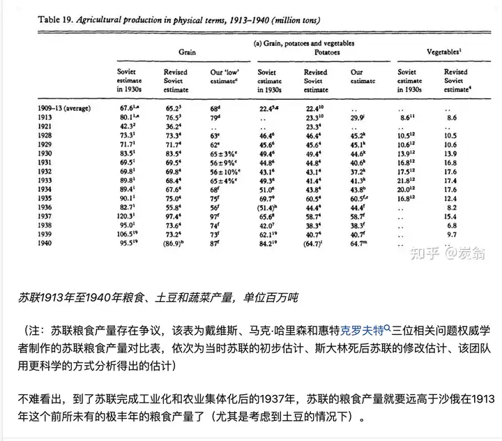 (记住 反复宣称的“这张表告诉我们,1938年及之后苏联完成工业化以后粮食产量就已经超过沙俄了”)