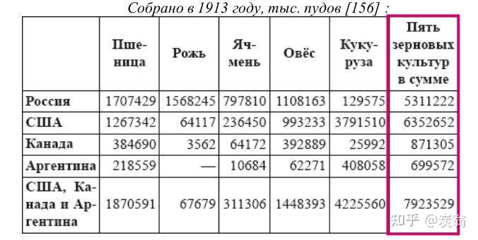 换句话说,即使我们假设当时沙俄的粮食产量真的比美国、加拿大和阿根廷的总和高出三分之一,但人均仍然低出许多。