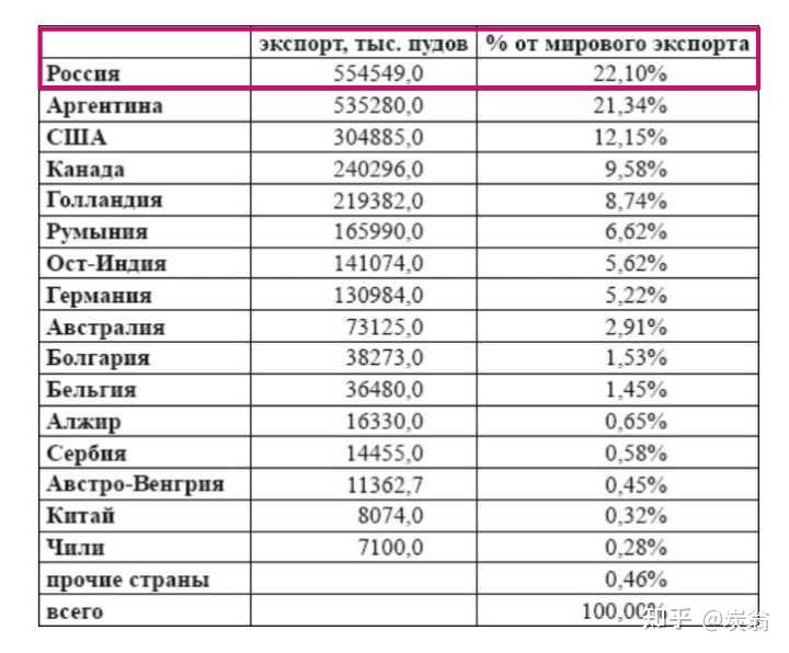 不难看出,尽管这一年沙俄的小麦收成领先于美国,但总体上还是不如美国、加拿大和阿根廷的总和,根本不存在什么所谓的“高出三分之一”。