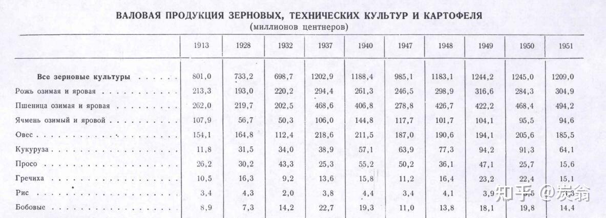 不难看出,到了苏联完成工业化和农业集体化后的1937年,苏联的粮食产量就要远高于沙俄在1913年这个前所未有的极丰年的粮食产量了。