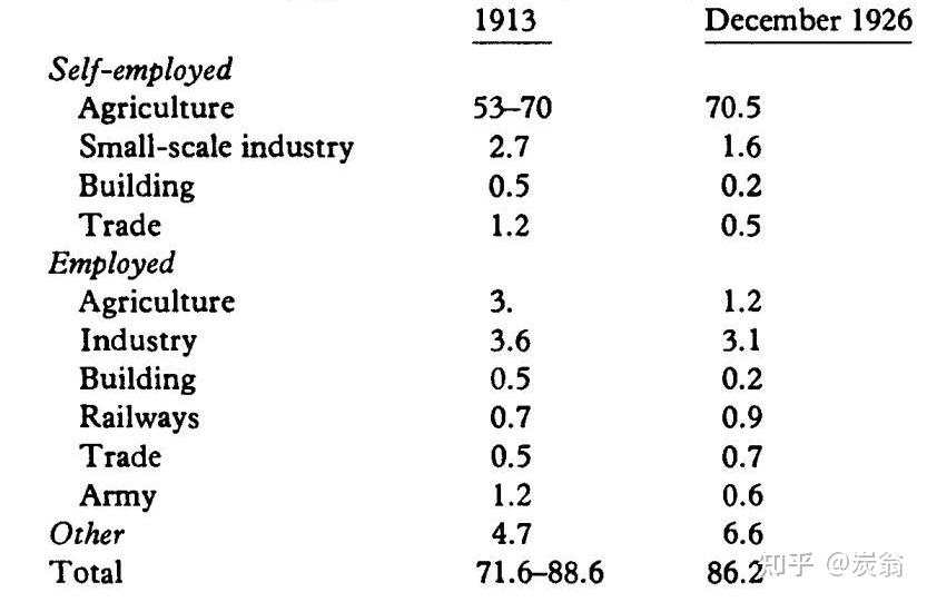 1913年时,沙俄超过80%的人口从事农业,而在内战刚结束,进行战后重建的新经济政策时期,苏联的人口就业结构并没有发生太大的变化。