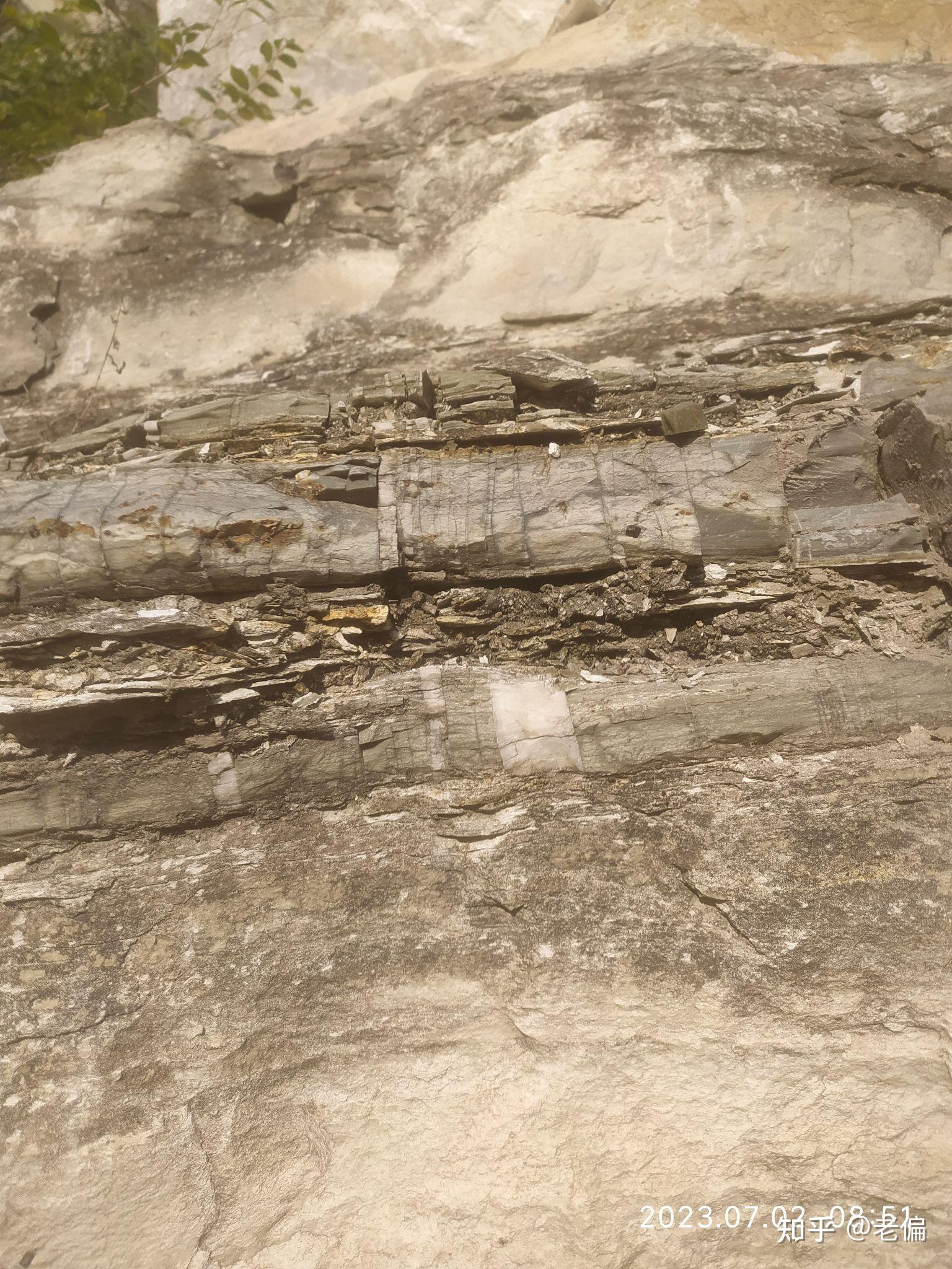 这是岩浆侵入,挤压,让原本连在一起的水平岩层分离,之后两层岩石之间的岩浆慢慢冷却才能有这么大的晶粒,一个冷却过程,可能会超过一万年之久。
