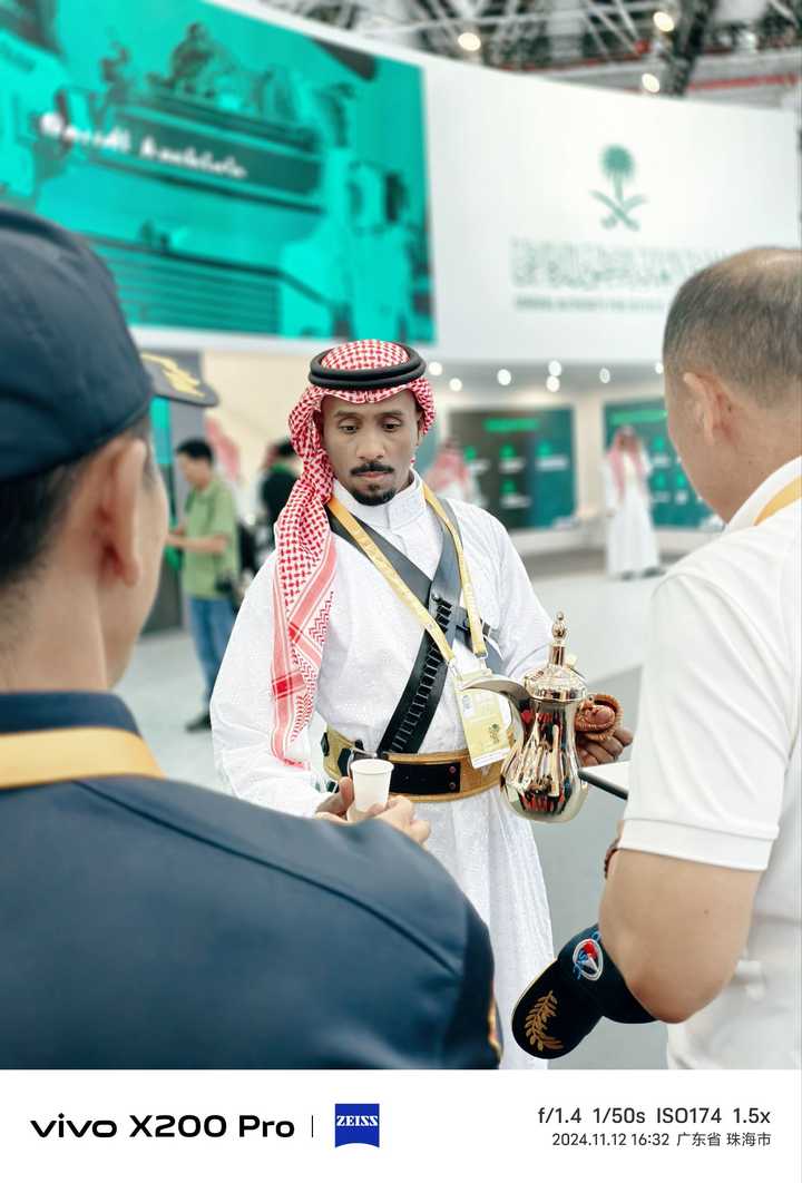 12日上午,《环球时报》记者来到沙特展台,在交谈中,沙特官员还用极具特色的金色咖啡壶请记者喝咖啡,记者也用阿拉伯语表达了感谢。