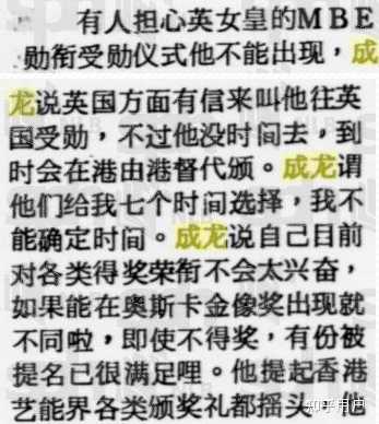 80年代末,成龙获颁英国MBE勋爵——其实参加86年英女皇访港汇演,就有人说他是“爱英国”之类,但事实是英国那边亲自写信请他去当地领奖,还主动给他好几个领奖时间供他选择,他都没去,而当时他希望有机会去的是奥斯卡,不想最后却拿到了奥斯卡的终身成就奖。
