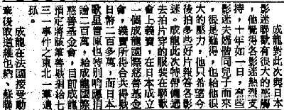 还有1990年的报道,成龙通过其日本粉丝团等,收到了500万日元(当时折合30万港币左右)的善款,然后他把这笔善款捐给了谁?