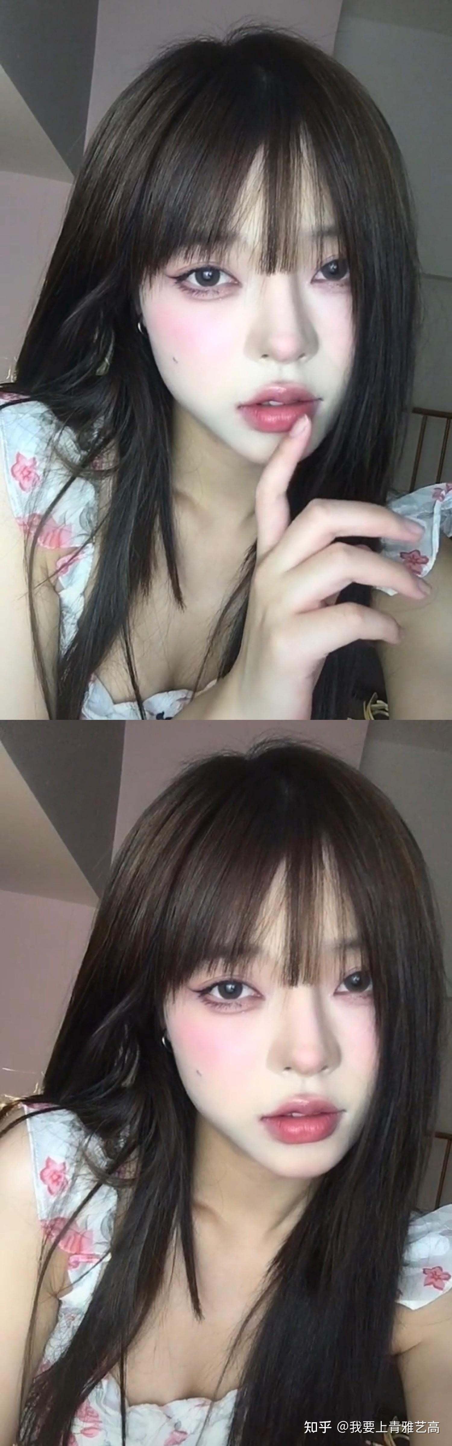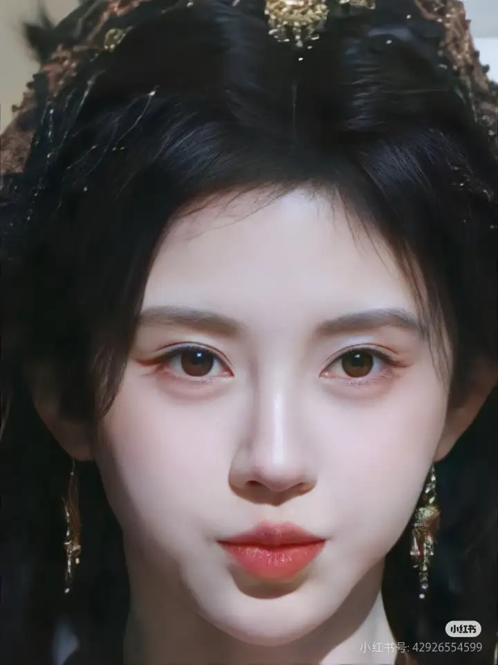再有妆容的加持(眼尾拉长,加深卧蚕,突出下睫毛),一种楚楚可怜的 无辜少女感就出来了。(不讨论人品,但看着这张脸,确实是美的)