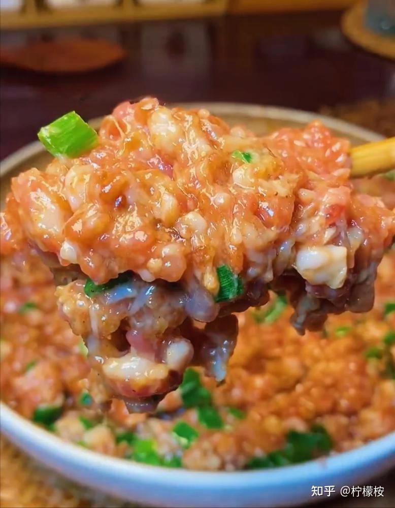 做法:牛肉、胡萝卜用绞肉机绞碎,芹菜切粒,加入生抽2勺+老抽1勺+蚝油1勺+食用油1勺+沙茶酱1.5勺,按照一个方向搅打上劲即可。