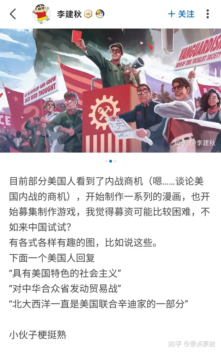 这是秋国师在22年8月发的帖子,说是美国人发现了美国内战的商机,开始做游戏和漫画。