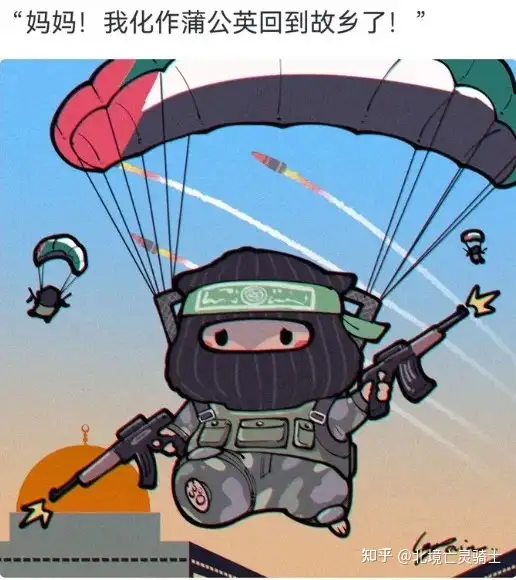 当然是第一眼看到这个萌化版的哈马斯士兵漫画了,第一眼看到特别可爱,但看到上边这段文字,鼻子有点酸。