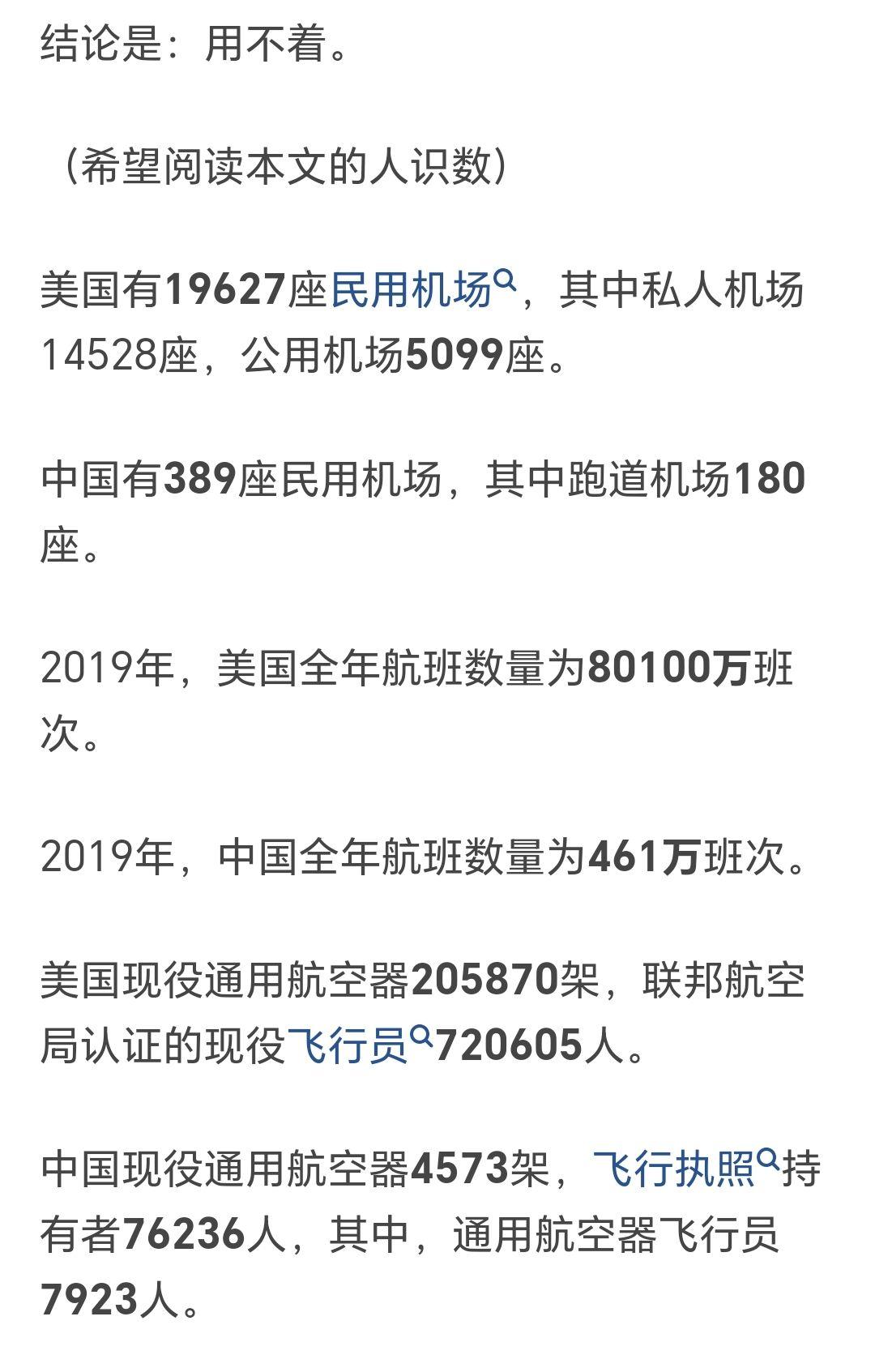 另外,美国虽然有19633个机场,其中公共机场5082个,但公共机场中大部分是【通航机场】。2019年美国接受定期客运航班的机场是629个,其中436个支线机场。而2019年中国大陆定期客运航班机场239个,其中支线机场165个。