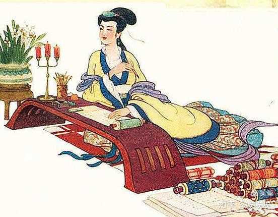 纺织,跟女孝经图一样,端坐在垫子上干活。