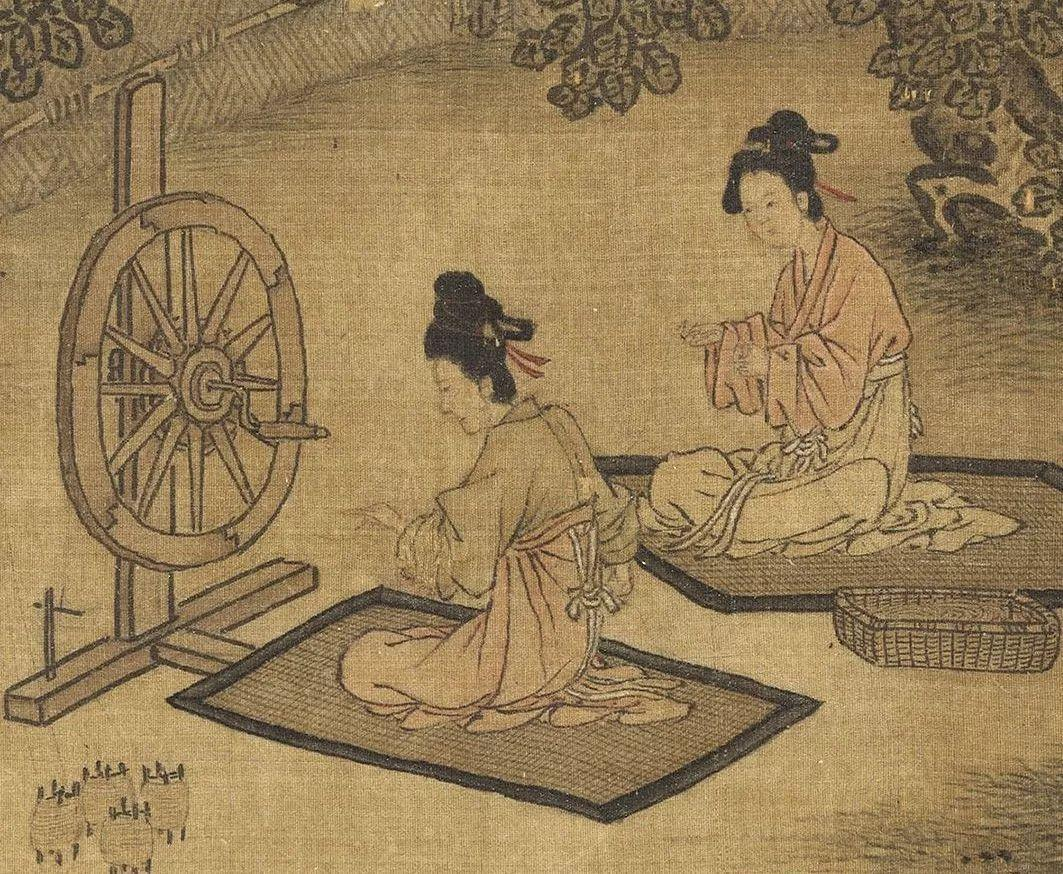 古代女性干活的图也很少,我只找到纺织和给娃洗澡的。