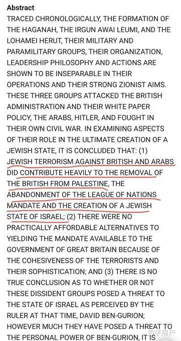 需要说明的是,犹太人并非完全小白兔,也干过报复性杀戮的事情。但这些都是对阿拉伯人的屠杀行为反制,而非主动杀戮,更不是通过杀戮来吓跑阿拉伯人。且极端的伊尔贡、莱西组织行为并不受犹太人主流支持。
