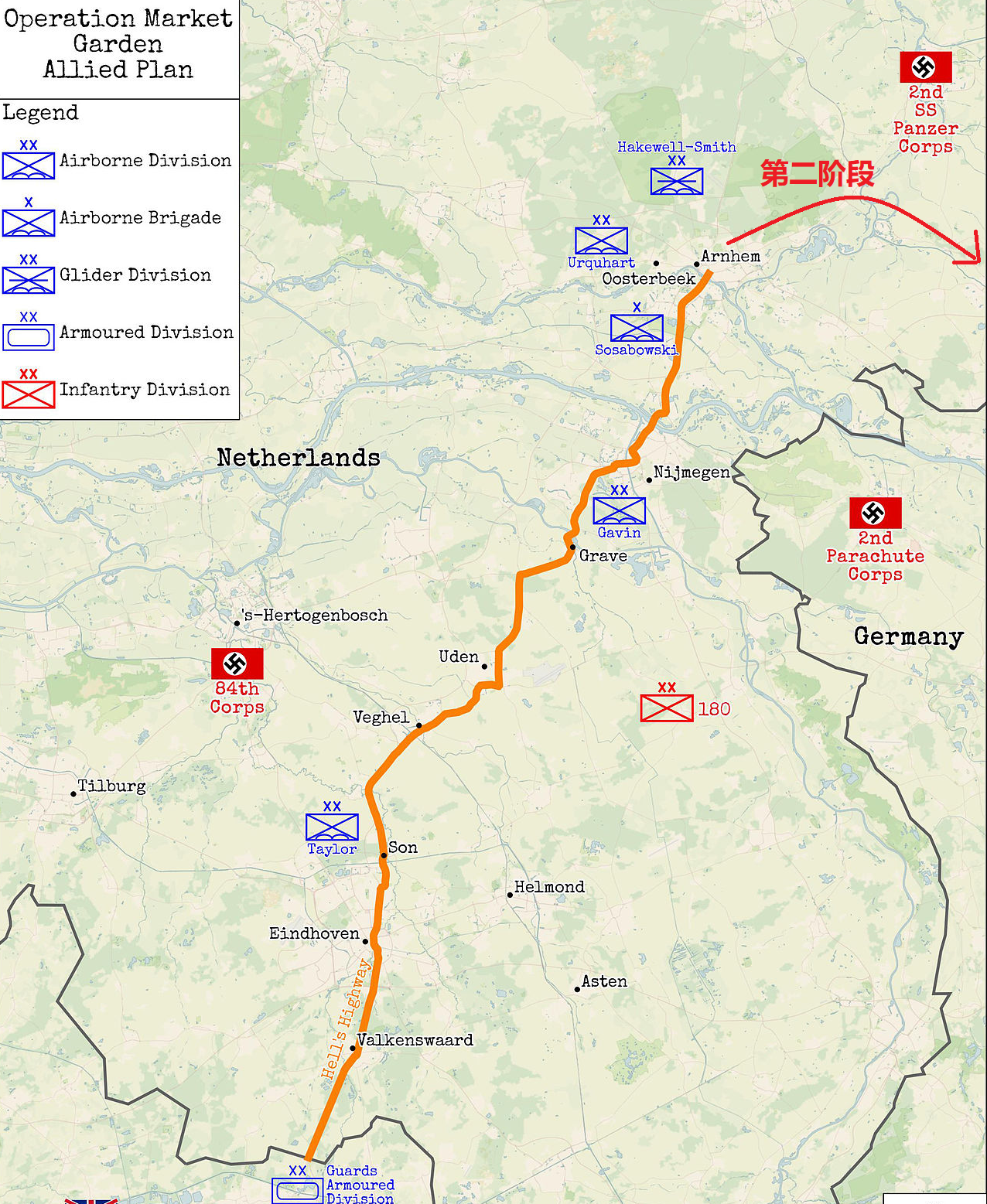 但Xellos有一个批评还是很有道理的,市场花园行动的目标并不是三座大桥,而是保持从埃因霍温到阿纳姆的一个狭长突出部全线畅通,30军在拿下阿纳姆后,还将继续向东卷击,沿着莱茵河进入鲁尔区,结束战争。