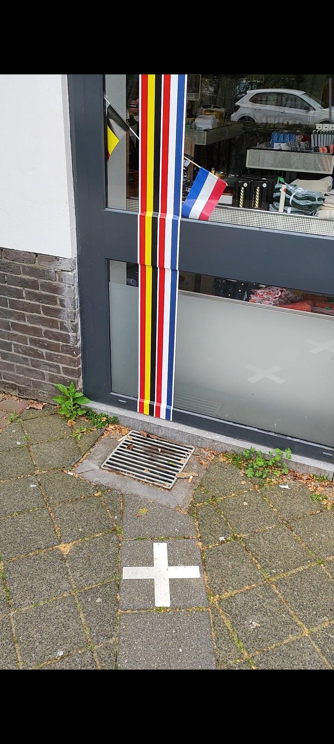 如图,十字虚线就是国界。甚至有的地方,一家被国界线分成两半。这里的路灯上都有国旗,表示着你现在在哪个国家。