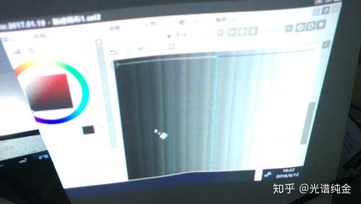 然后上示波器分析了各个信号..最后画了一块HDMI的驱动板....调试中发现大部分图像看起来是正常的,但是如果出现渐变色,则会有很诡异的效果....(忽略掉中间蓝色的线条,那个是信号线串扰引起的)