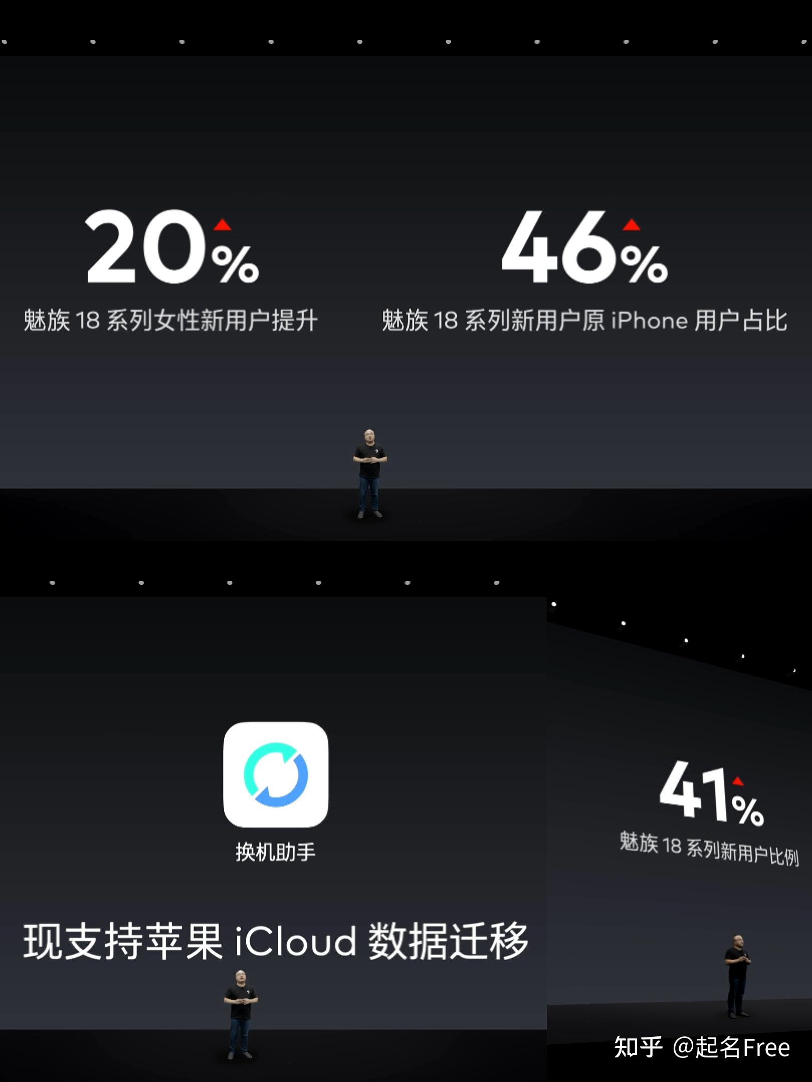 首先魅族放出了一系列的数据,其中发现18系列为魅族带来了相当一部分新用户,另外18系列的接近一半的新用户都是从iPhone来的,所以,这次魅族的换机助手支持从iCloud的数据迁移。