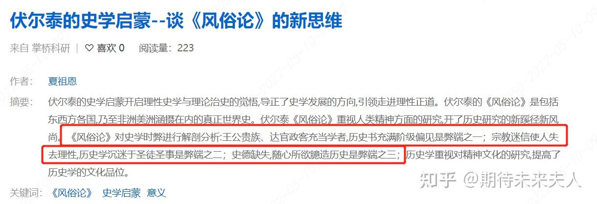 如果实在懒的看,网上还有大量的读后感和论文,大家可以翻一翻嘛,看看伏尔泰的历史观是什么。