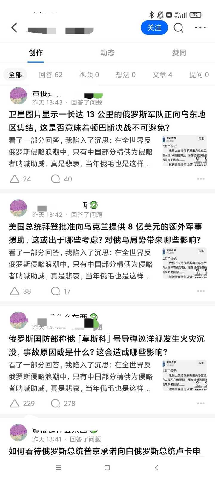 某号从3月开始,到现在,回答了1800+的问题,基本都是俄乌的。